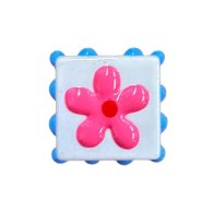 Glass Bead Charm HY-13 Square with flower - White and Pink, 18mm