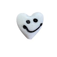 Glass Heart Bead-HQ-06 Smiley heart - White, 18mm