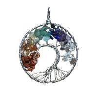 Semi Precious Stone Chakra Tree Pendant - Mix colors, 57mm